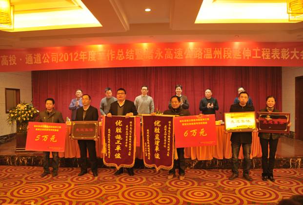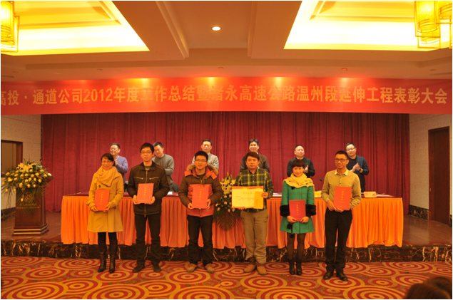 1月23日上午,高投、通道公司召開了2012年度工作總結(jié)暨諸永高速公路溫州段延伸工程表彰大會,市交投集團(tuán)副總經(jīng)理、通道公司總經(jīng)理李蛟,高投、通道聯(lián)合黨支部書記陳金社,通道公司副總經(jīng)理朱清福、劉錢,鹿城段辦公室主任鄭樂斌等出席,會議由通道公司常務(wù)副總經(jīng)理錢建人主持。