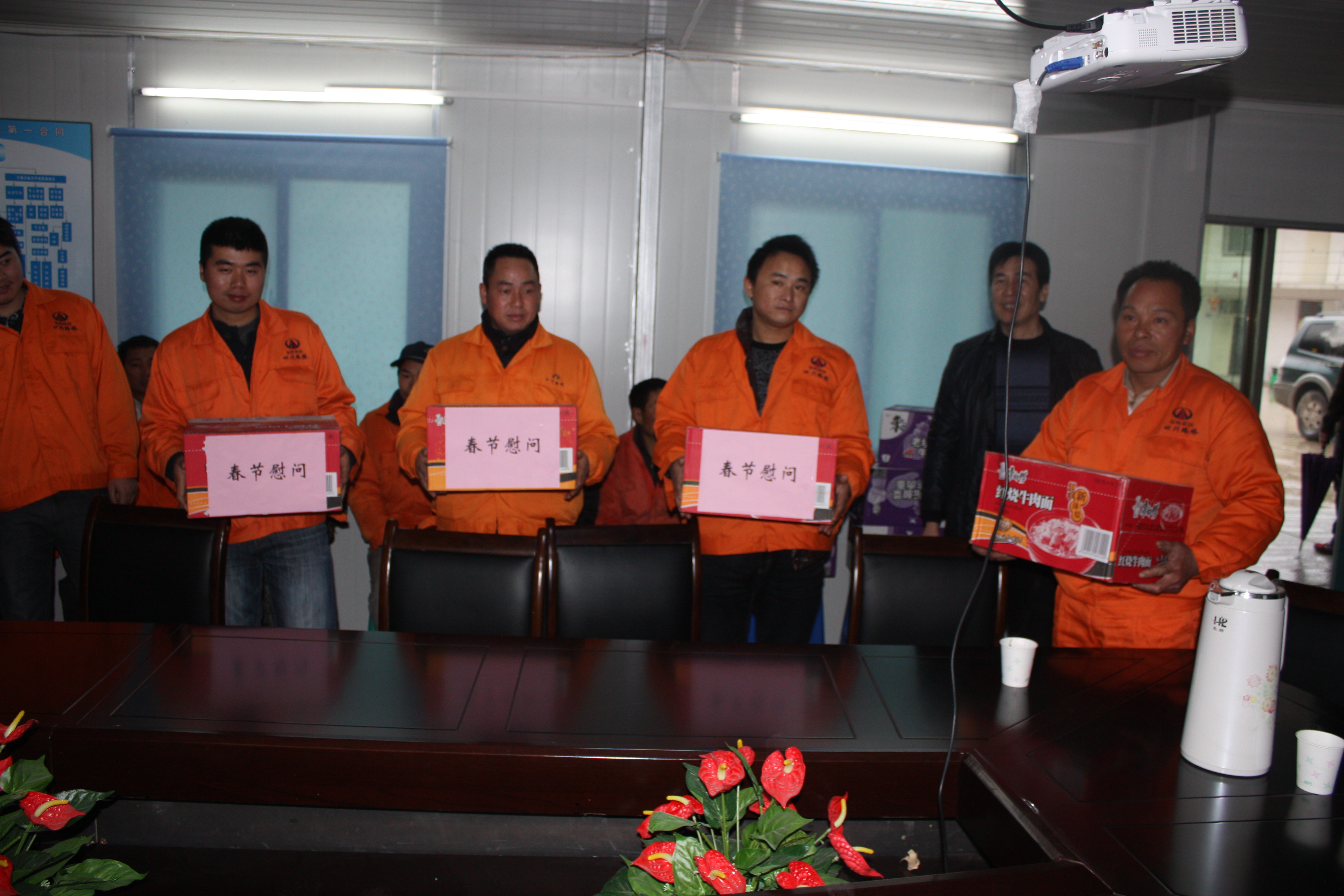 慰問(wèn)小組一行先后前往通道公司第一合同段、第二合同段項(xiàng)目部,為一線工人送去慰問(wèn)品和新年祝福,感謝他們?yōu)闇刂萁煌ㄗ鞒龅臒o(wú)私奉獻(xiàn),并再三囑咐留守工人要注意春節(jié)期間施工安全和人身安全,確保過(guò)個(gè)幸福祥和的新春佳節(jié)。