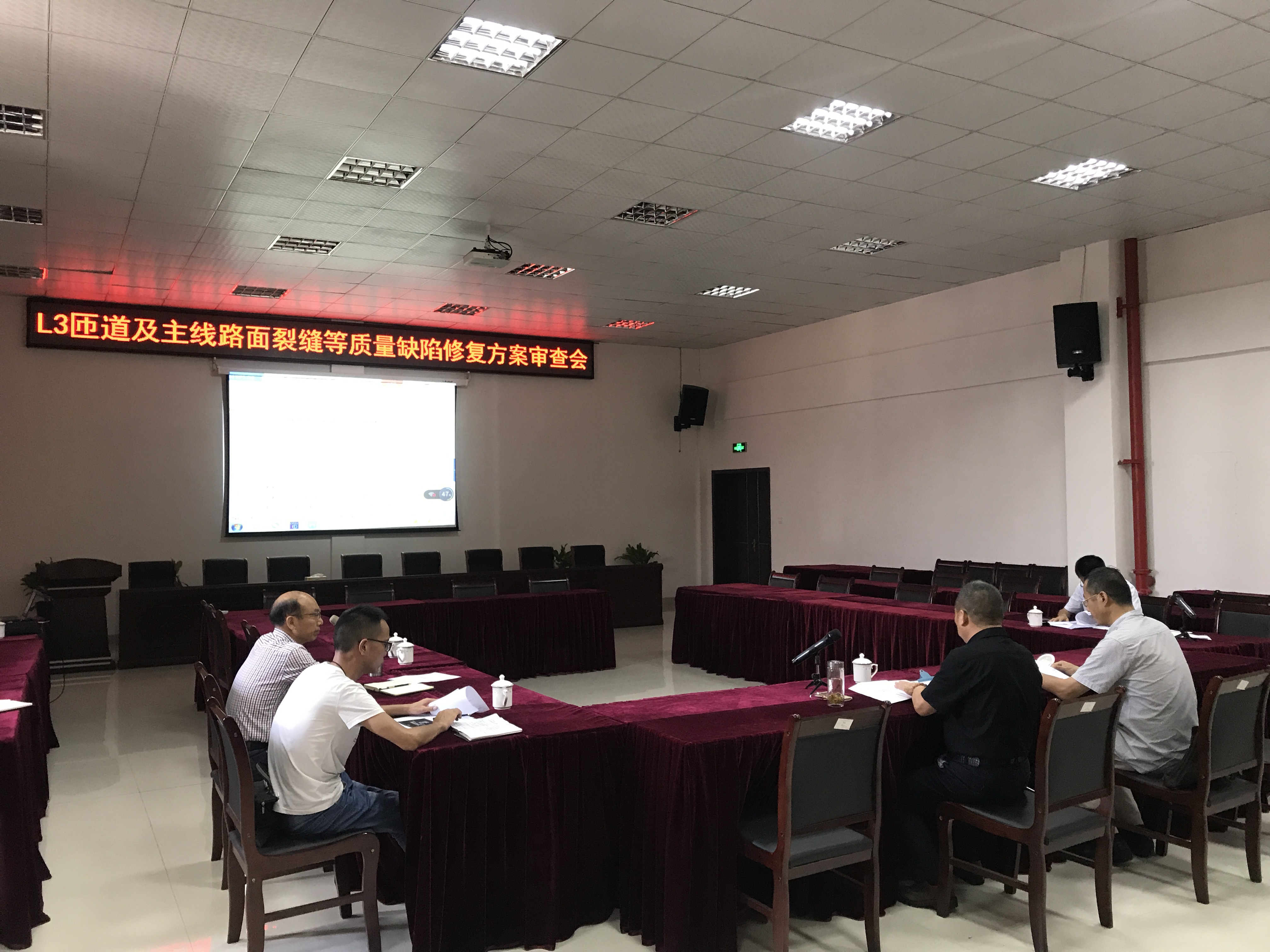 會上,與會人員對修復(fù)方案進行了認(rèn)真的審閱,對方案中的L3匝道路面裂縫處理和沉陷處理等問題進行了深入的探討并提出了評審意見,綜合各方意見完善了修復(fù)方案,并且要求第一合同項目部做好施工前的交通組織方案及路政交警等審批工作,在8月中旬要完成修復(fù)工作。