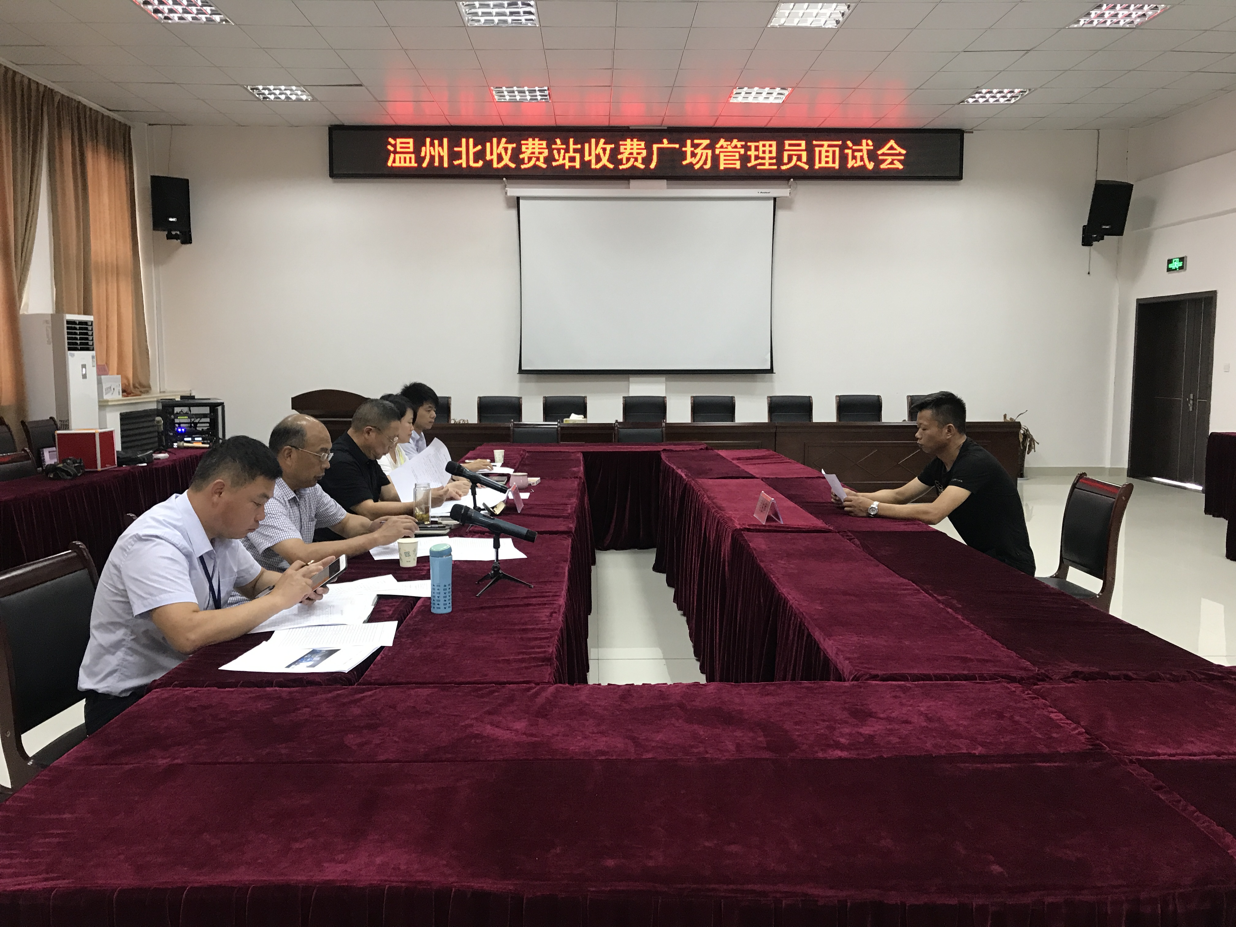 為進(jìn)一步加強(qiáng)溫州北收費(fèi)站廣場(chǎng)的管理工作,2017年8月21日上午,溫州甌江通道建設(shè)有限公司對(duì)通過(guò)資格審查參加溫州北收費(fèi)站收費(fèi)廣場(chǎng)管理員的22名報(bào)名者進(jìn)行了面試。