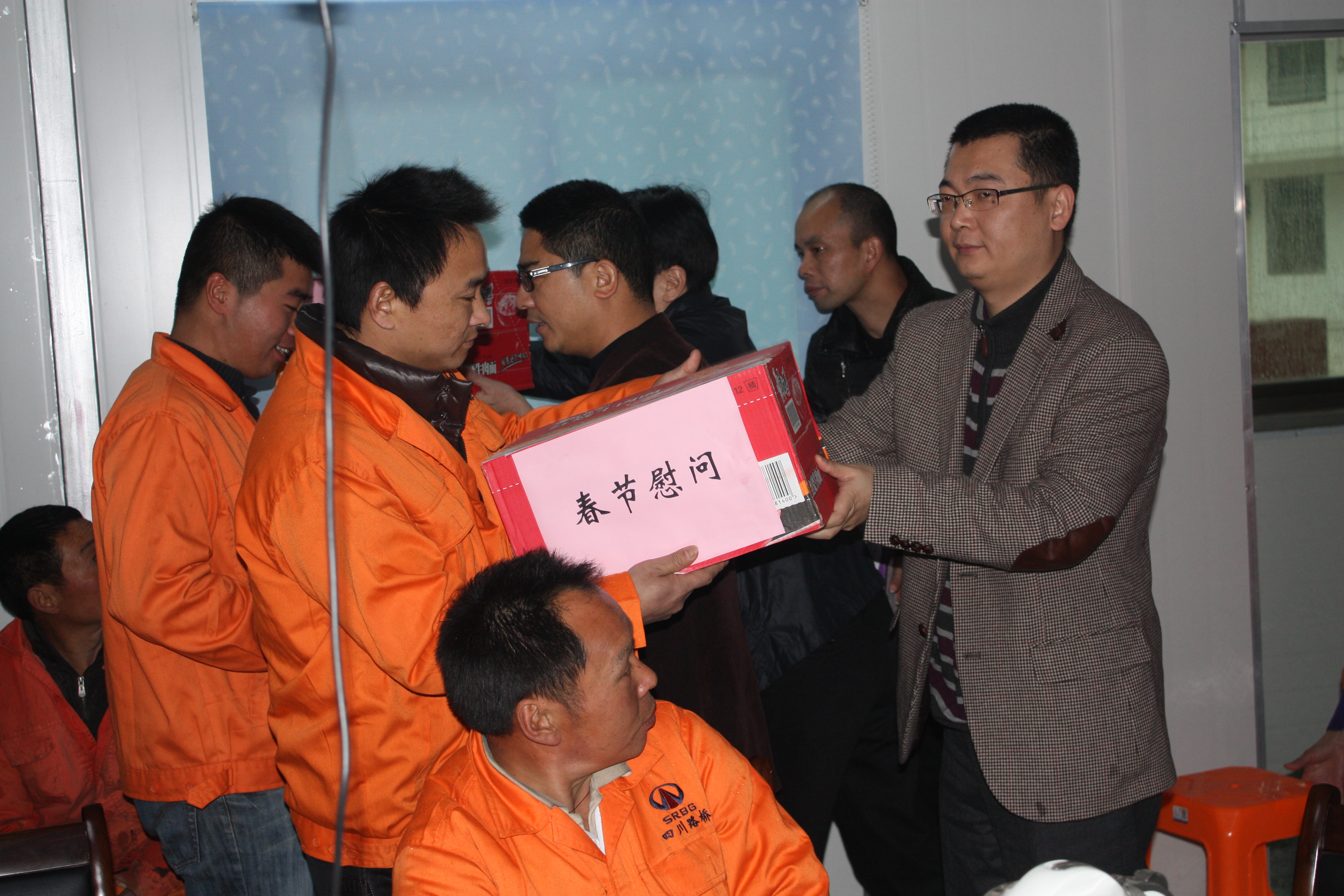 慰問(wèn)小組一行先后前往通道公司第一合同段、第二合同段項(xiàng)目部,為一線工人送去慰問(wèn)品和新年祝福,感謝他們?yōu)闇刂萁煌ㄗ鞒龅臒o(wú)私奉獻(xiàn),并再三囑咐留守工人要注意春節(jié)期間施工安全和人身安全,確保過(guò)個(gè)幸福祥和的新春佳節(jié)。