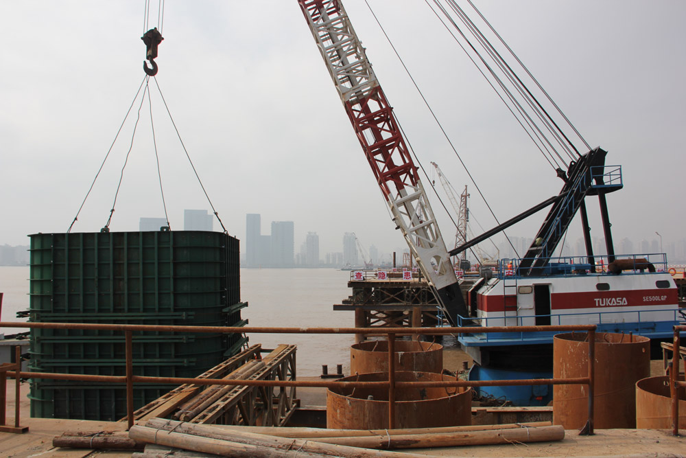 2011年9月13日16點(diǎn)18分首個(gè)鋼套箱下放